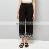Black Floral Embroidered Hem Cropped Trouser For Women