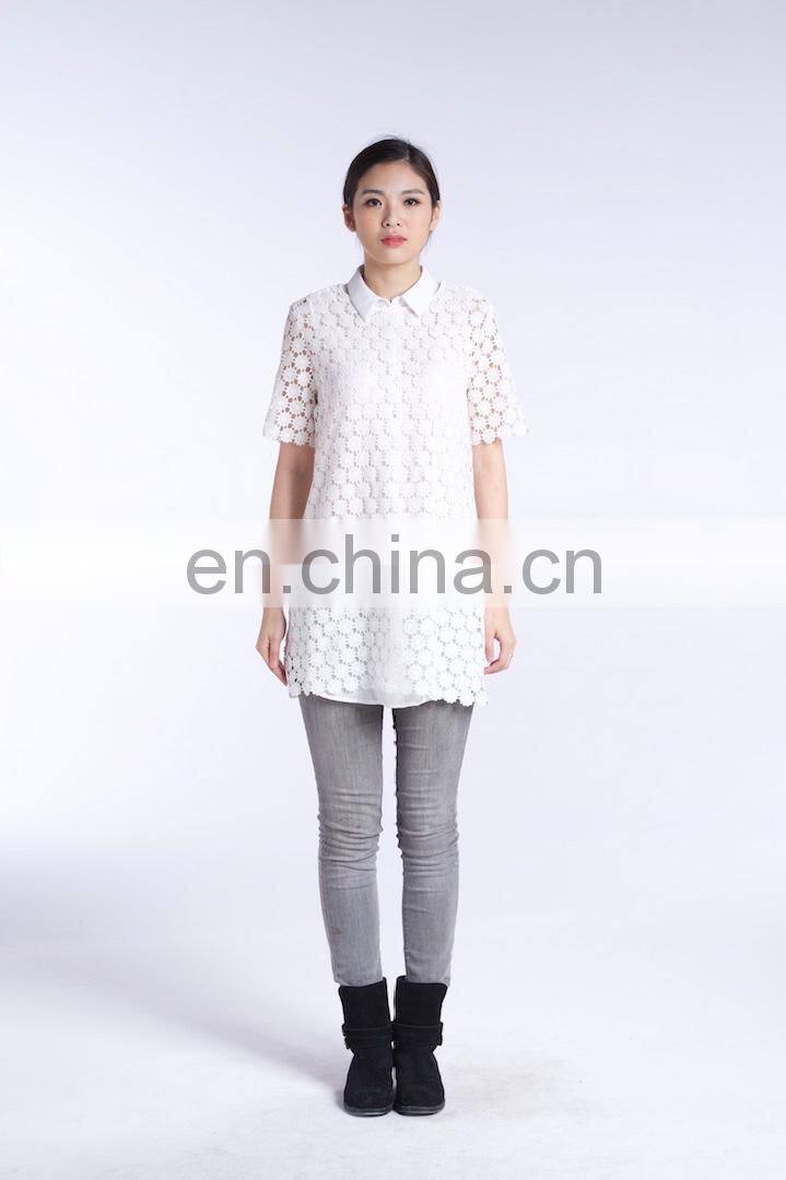 Factory Price Faster Delivery Custom White Women Top Laces Fabric Dress Shirts Wholesale