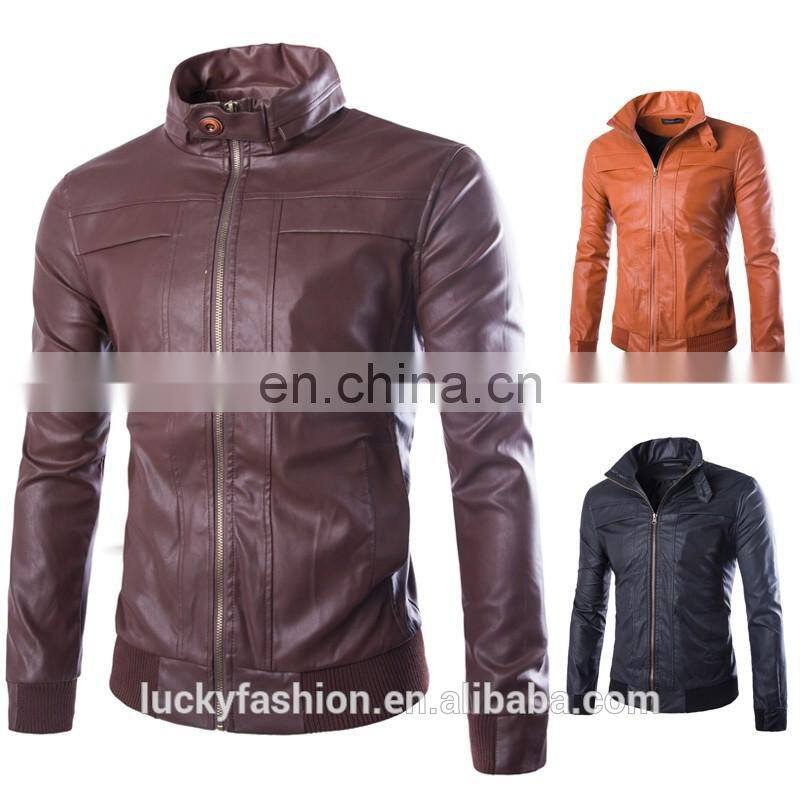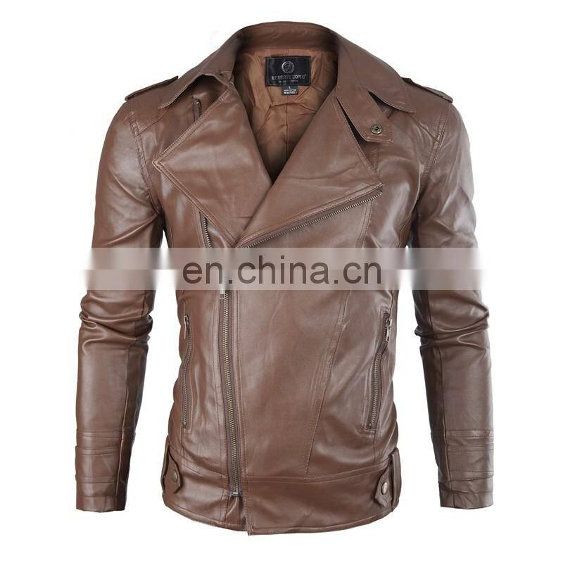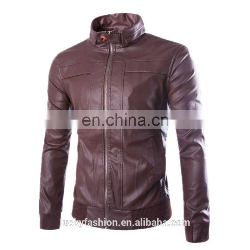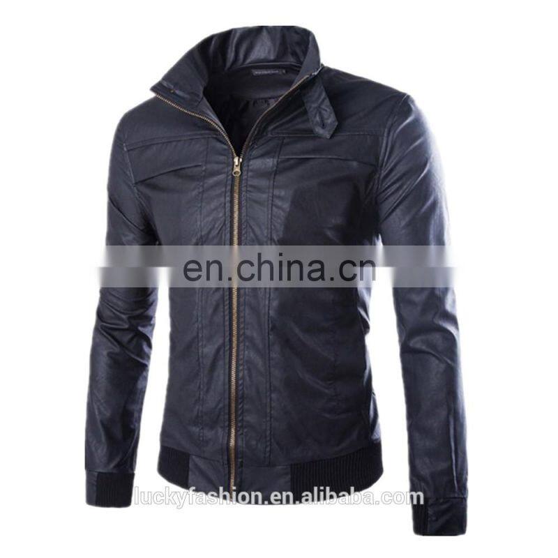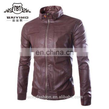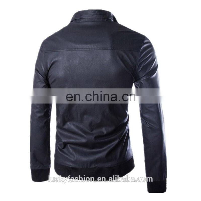 Wholesale Men PU Leather Motorbike Jacket Washed Slim Fit Leather Coat