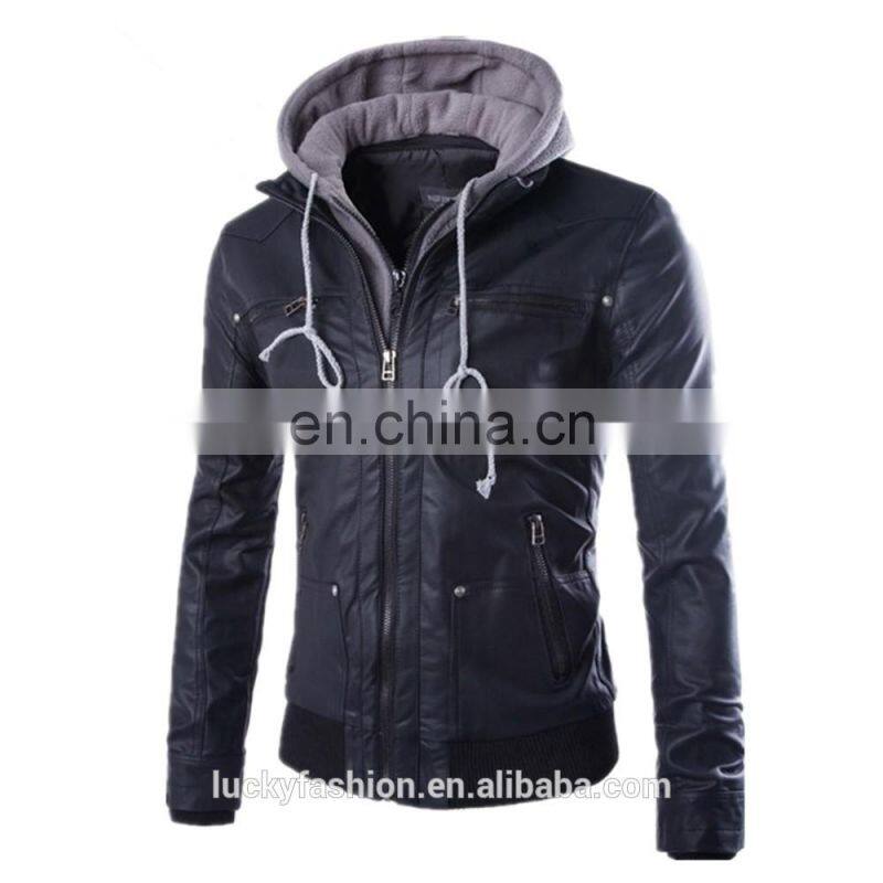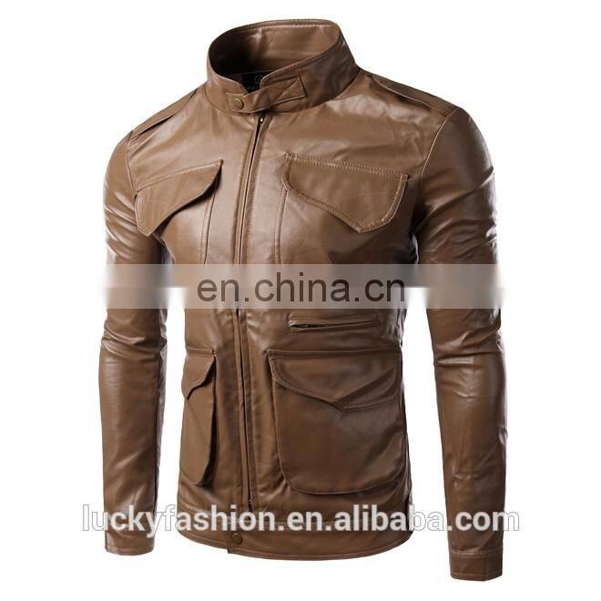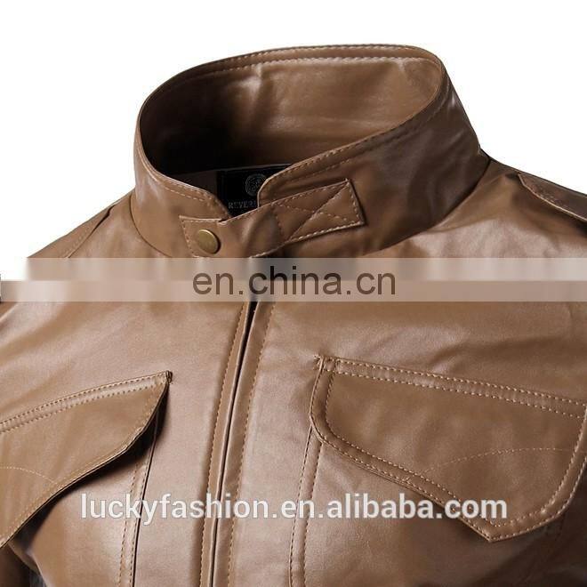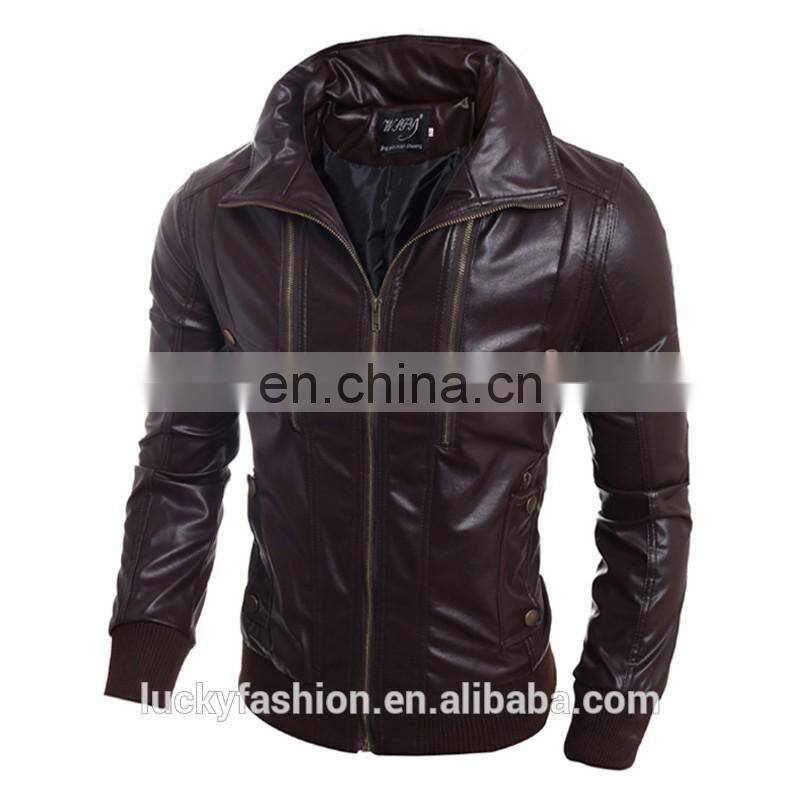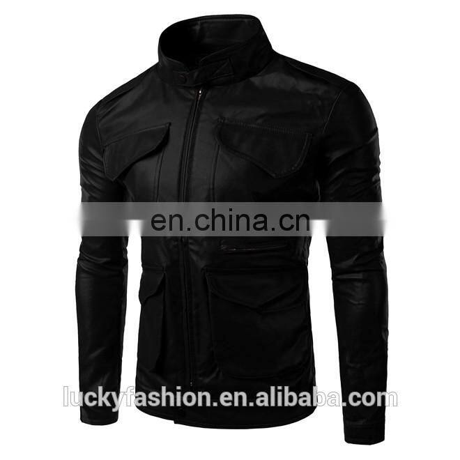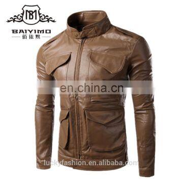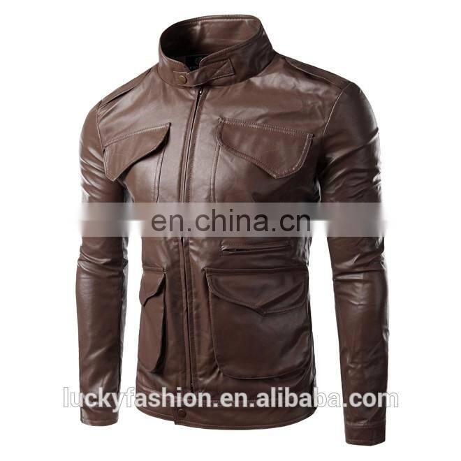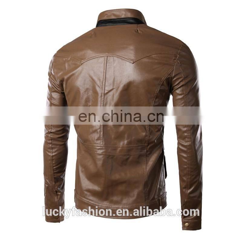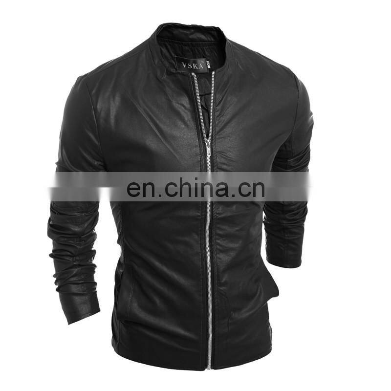 2016 New Style Stand-up Collar Faxu Leather Jacket For Men