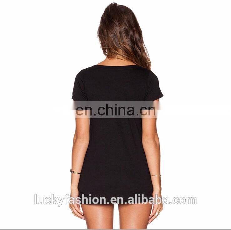 OEM Women's Sexy Girls Simple Black V Neck Wholesale t Shirts
