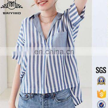 Lucky fashion is a clothing manufacturer, factory located in Guangdong, China. Lucky do OEM & ODM service. Customer could have their own design/logo on the 2017 Ladies Summer Fashion Casual Mixed Striped Loose Plus Size Tshirt. Lucky are able to help you to create new products and enrich your clothing line.