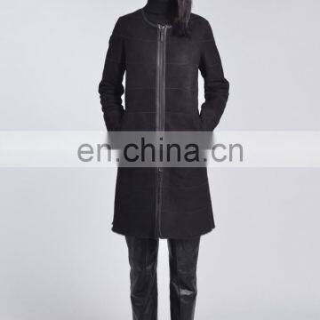 O Collar Sheepskin Fur Overcoat Top Quality Sheep Fur Leather Coat Simple Design Striped Sheep Fur Jacket