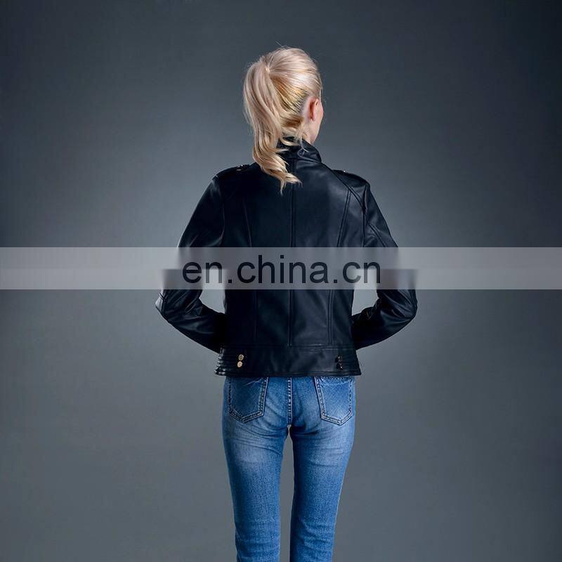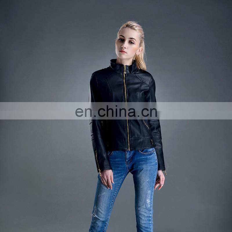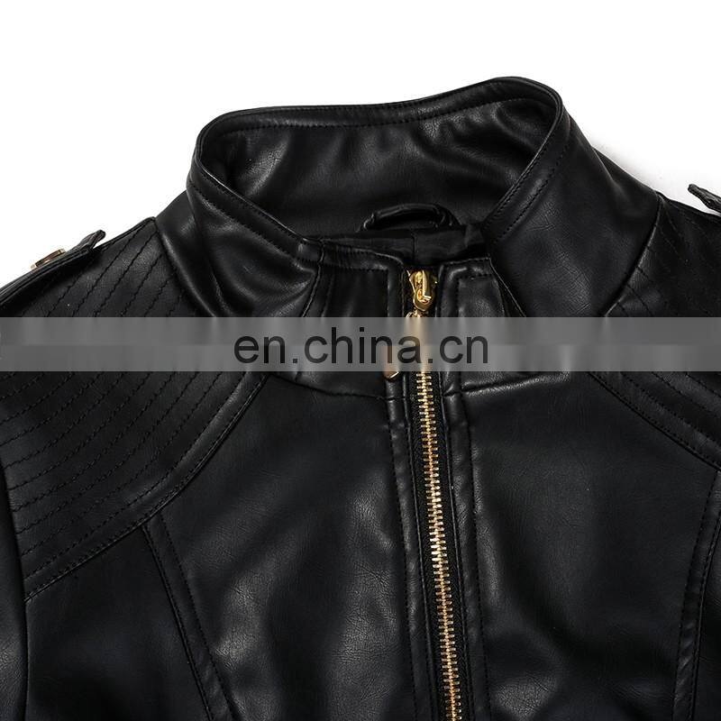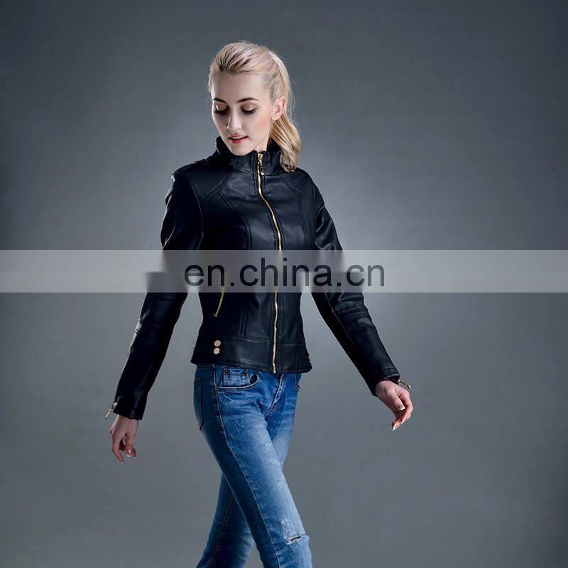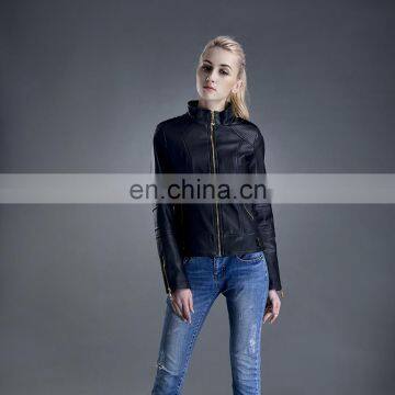 2017 New Style Women Spring Fashion Slim Zipper PU Leather Jacket