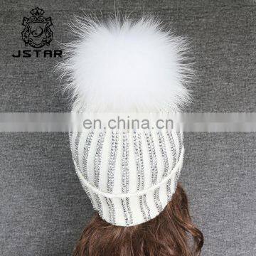 Winter Wool Knitted Beanies Scarf Fox Fur Pompom Knitted Hat WoolNegotiableMOQ: 1 Piece