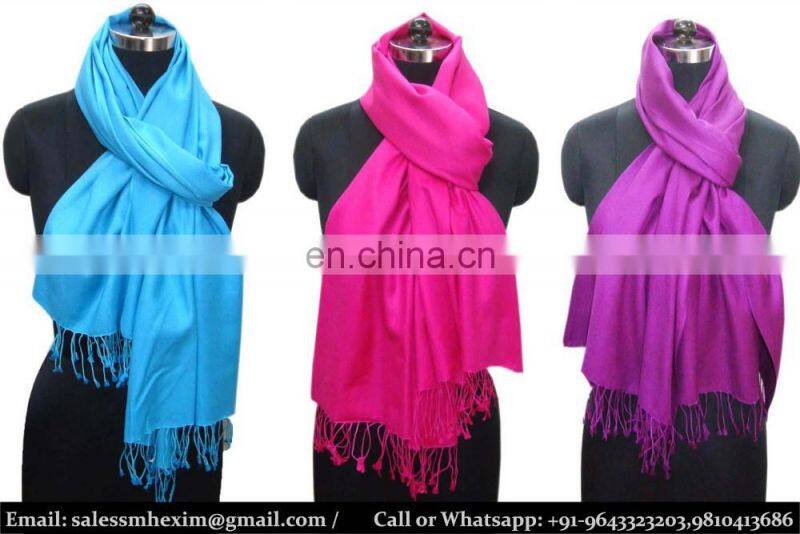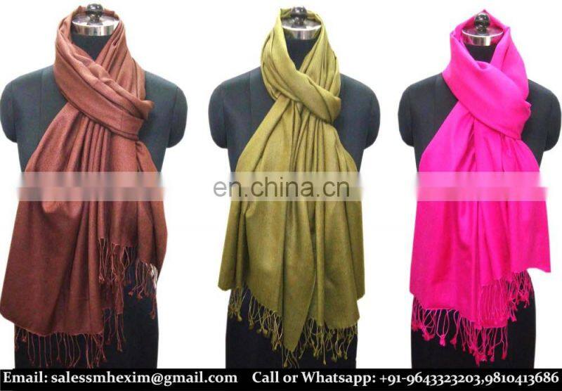 "We provide an impeccable range of plain Pashmina shawls, stoles & scarves designed to the highest standards of quality and workmanship. These Pashmina shawls, scarves & stoles are carefully hand-woven to create a sensual warm and soft texture available in beautiful colours. Pashmina shawls, stoles and scarves are a beautiful and useful addition to any wardrobe. They will "dress up" a casual outfit and add the perfect finishing touch to dressier attire. Pashmina shawls, stoles & scarves are available as per requirement and taste of our customers."