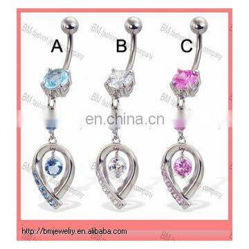 16g Belly button ring with big stone and jeweled teardrop dangle body piercing jewelry ring