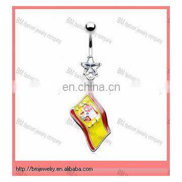 New arrive !! Belly button ring with dangling Spanish flag shaped navel ring body piercing jewelry