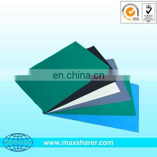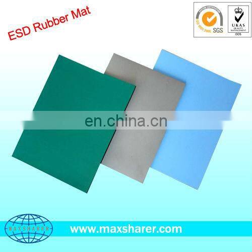 ESD rubber mat or ground mat should be laid out in the workshops and advanced laboratories for microelectronic industries such as electronic semi-conduct devices, electronic computers, electronic communication equipment and integrated circuits etc. To eliminate damages caused by static electricity. When anti-static rubber mat (ground mat) are laid out and grounded, the working surface will discharge the static electricity of human bodies so that a near-equipotential can be maintained for ESEDS tweezers, tools, utensils and instruments, through which human bodies contact the working table and static sensitive devices(SSD) are free from broadband interference produced by static discharging such as triboelectrification etc. In this way, electrostatic protection is realized.