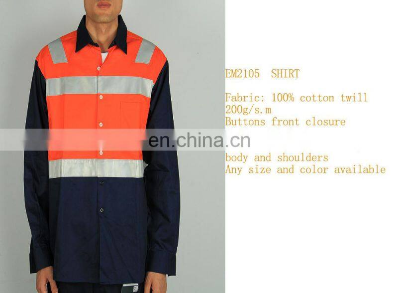 Safety Reflective Work t Shirt Clothing Custom hi Vis Long Sleeve Work Shirt 100% Cotton
