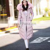 2017 New Korean Version of Slim Big Code Solid Color Hooded Large Hair Collar Long Feather Cotton Women