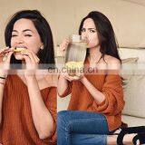 One Side Shoulder Top Woman Sweater Out -off-balance Sweater for Girl KMY1011