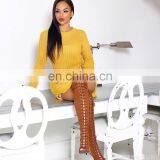 Korea Winter Long Coat Wholesale Hollow Out Knit Pullover Women Sweater KMY1286