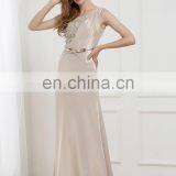 C5026 Champagne Satin and Lace Bridesmaid Dress With PU Belt