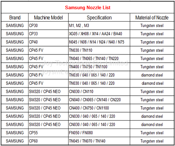 Samsung Nozzles CN030 CN040 CN065 CN140 CN220 CN400N CN750 CN110