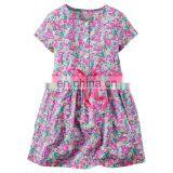 New Arrivel Baby Flower Front Button Girl Dress With Waist String