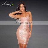 Fashion High Quality Thin Women Golden Bling Bling Strapless Skirt Dresses