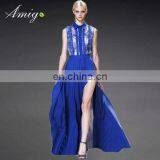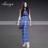 Fashion High Quality Women Blue Strapless Dresses With Hollow Short Skirt