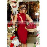 On Sale High Quality Hollow Tight Skirt With Transparent Red Female Party/dating Dress