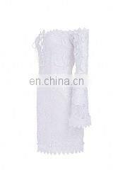 2017 New Design White Elegant Off-shoulder Long Lace Sleeve Bandage Dress Sexy XXX Mini Evening Dresses for Women Party Wear