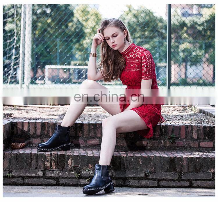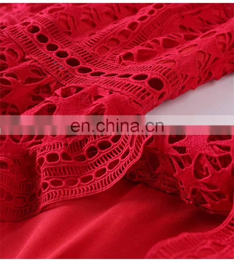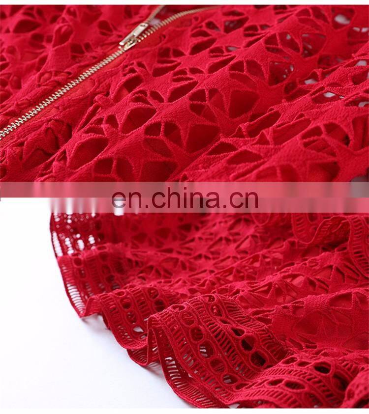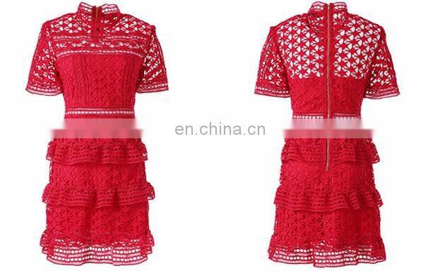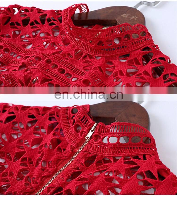 2017 Summer New Design Red Short Sleeve Five-pointed Star Lace Mini Dress Formal Through Out Evening Dresses for Girl Party Wear