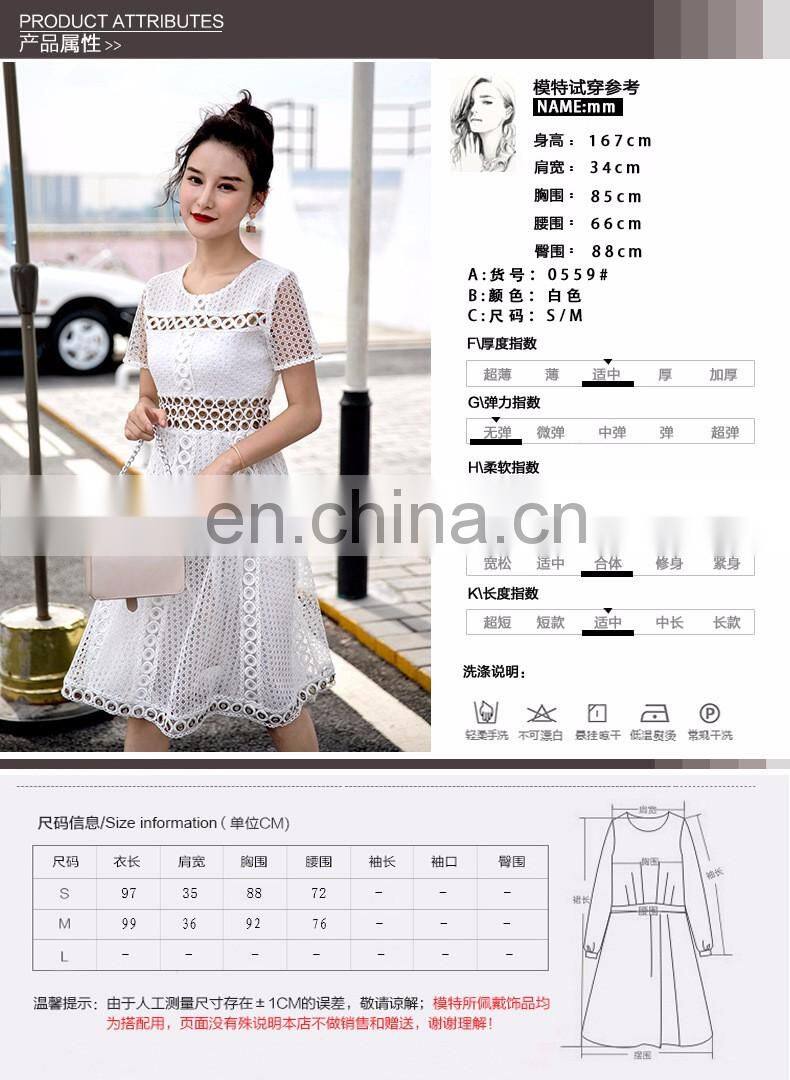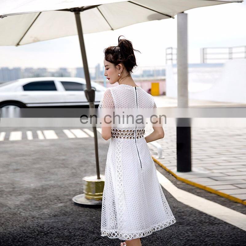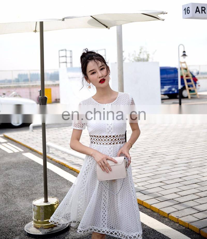 2017 Summer New Design White Short Sleeve Lace Thin Madi Pleated Dress Formal Through Out Evening Dresses for Women Party Wear