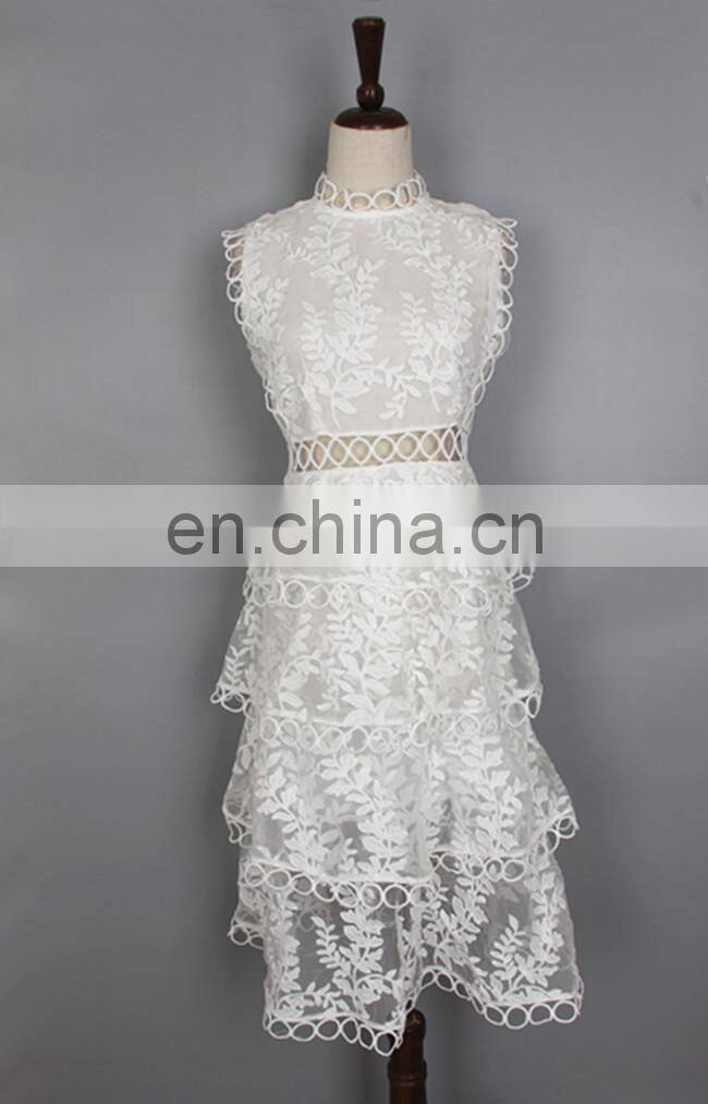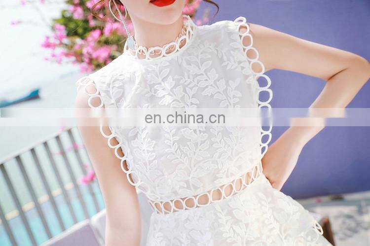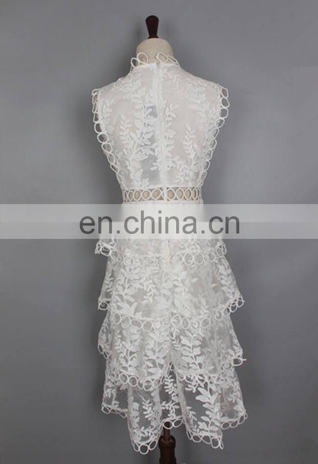 White Lace Dress Lace Patch Work Hollow Out Embroidered Knee Length Sleeveless Formal Dress
