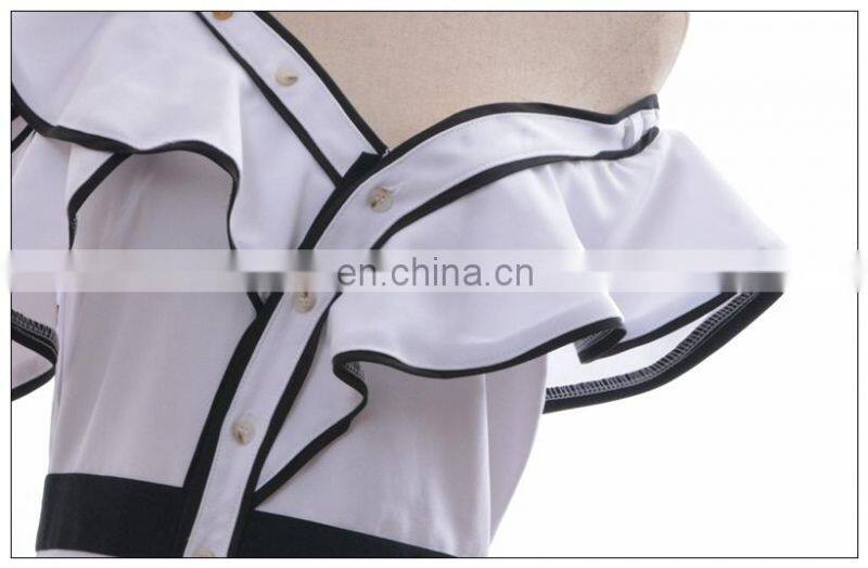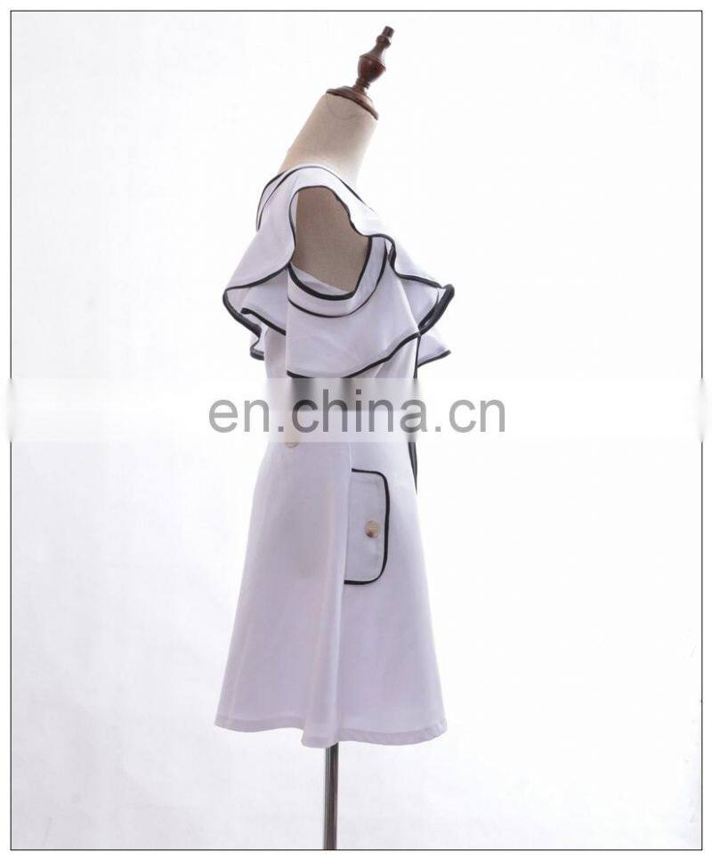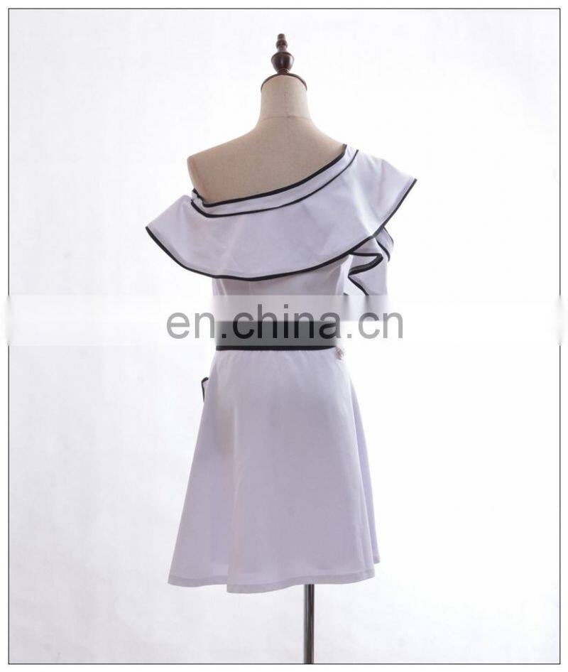 New Arrived One Shoulder off Cute Dress White Cotton Butterfly Sleeve Fit and Flare Mini Solid Dress