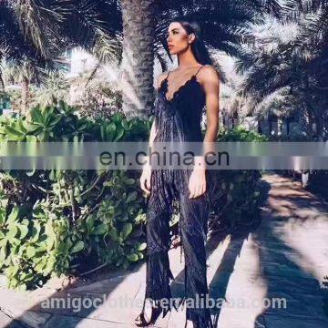 Amigo 2017 New Style White Dew Chest Tassel Strap Sexy Lace Long Bandage Jumpsuit for Women Party Wear