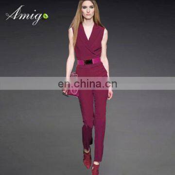 maroon v neck fashion show brand quality women jumpsuit manufactory