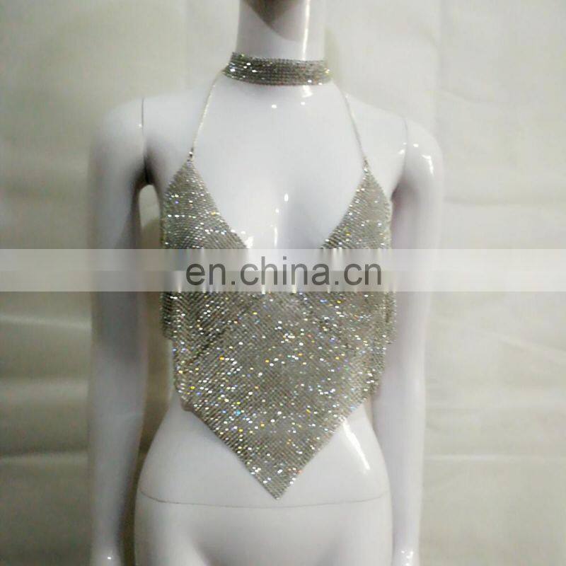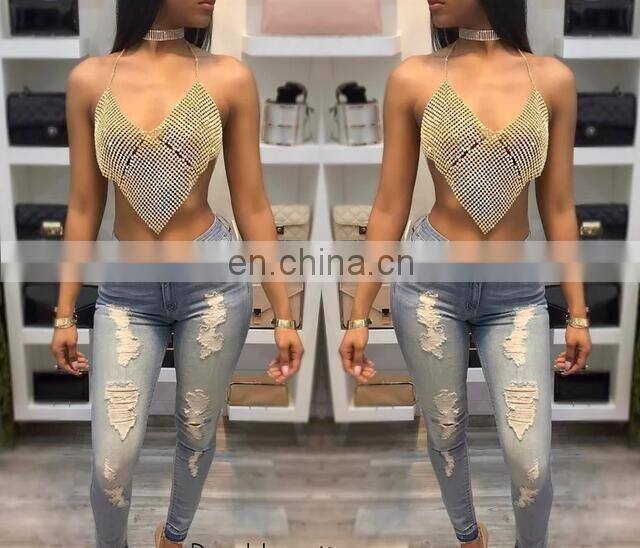 2017 New Arrived Women Top Metal Diamond Gold Silver Hand Patch Work Sexy Top Wholesale Retail 1pcs Dropshipping