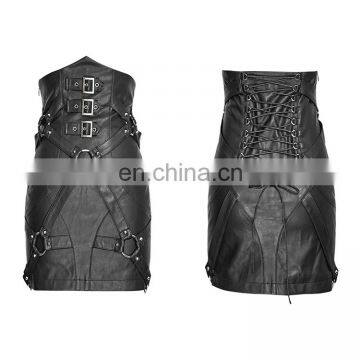 Punk Rave Q-270 Black High Waist Fetish Military Style Mini Skirt With Straps