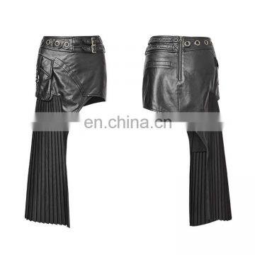 Q-274 Punk Rave Gothic Black High-low Asymmetrical Pleated Vegan Leather Skirt