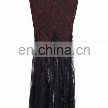 Q-257 Punk Rave Gothic Dark Red Lace Long Mermaid Skirt