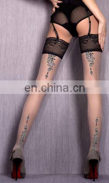 Nude Color Ladies Sexy Nylon Stockings With Black Ornaments