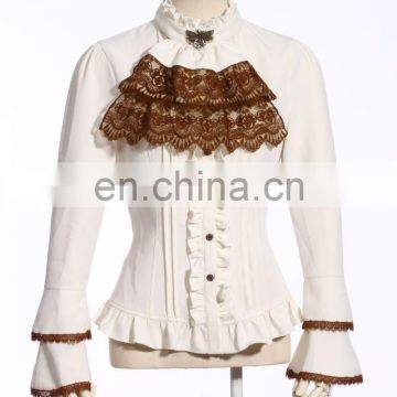Steampunk RQBL Women's High Collar Longsleeve Blouse With Jabot