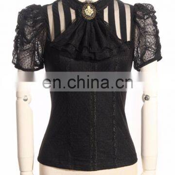 Steampunk Gothic Blouse With Jabot and Octopus Brooch