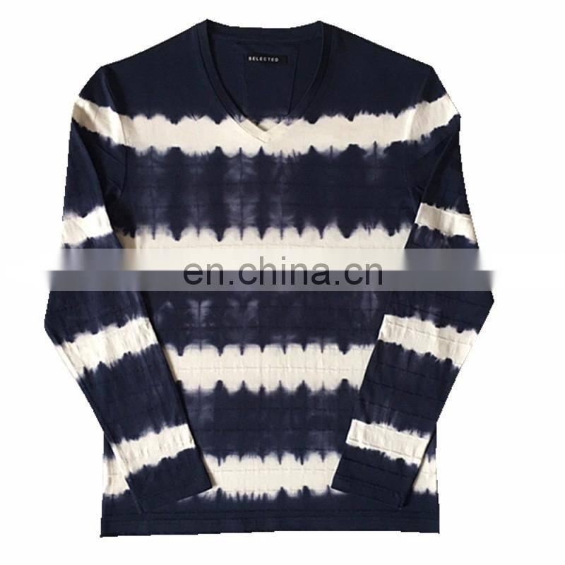 100% Cotton Customized Brand Men's Knitted Long Sleeve V-neck Tie-dyed Technics T-shirt
