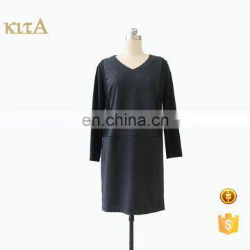 KITA: women V neck 3/4 sleeve one piece V neck lady dress