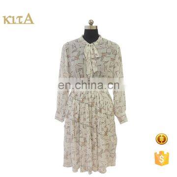 2016 women long sleeve geometry print shirt dress with tie
