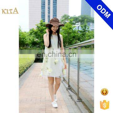 Women Sleeveless Embroidery Flower Chiffon Dress