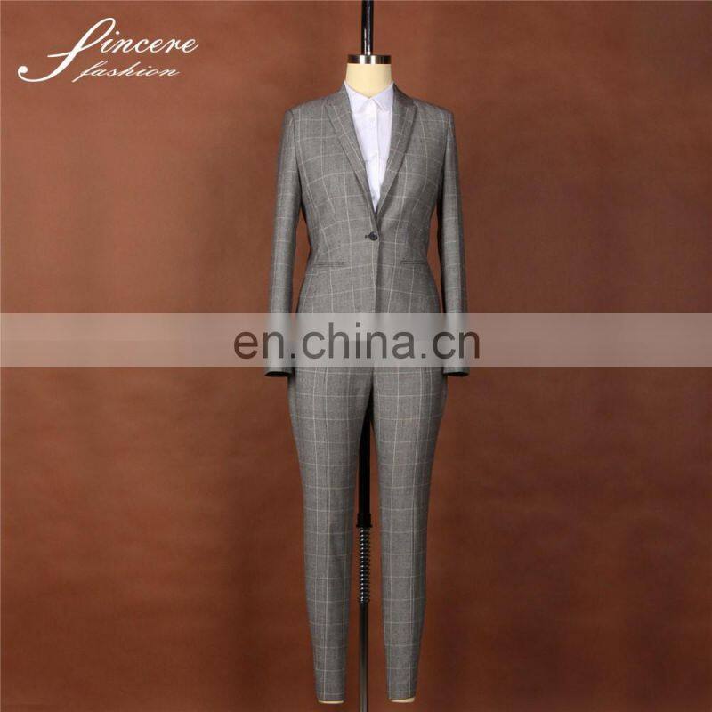 Ladies Wool/Polyester Lattice Fabric Fancy Ladies Suits Business Suits