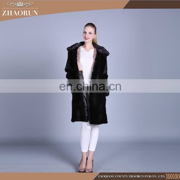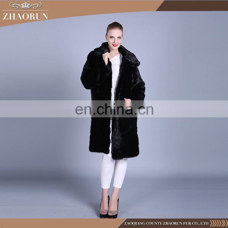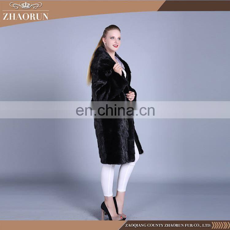 Wholesale China Hooded Black Mink Fur Coat / Genuine Mink Fur Coat