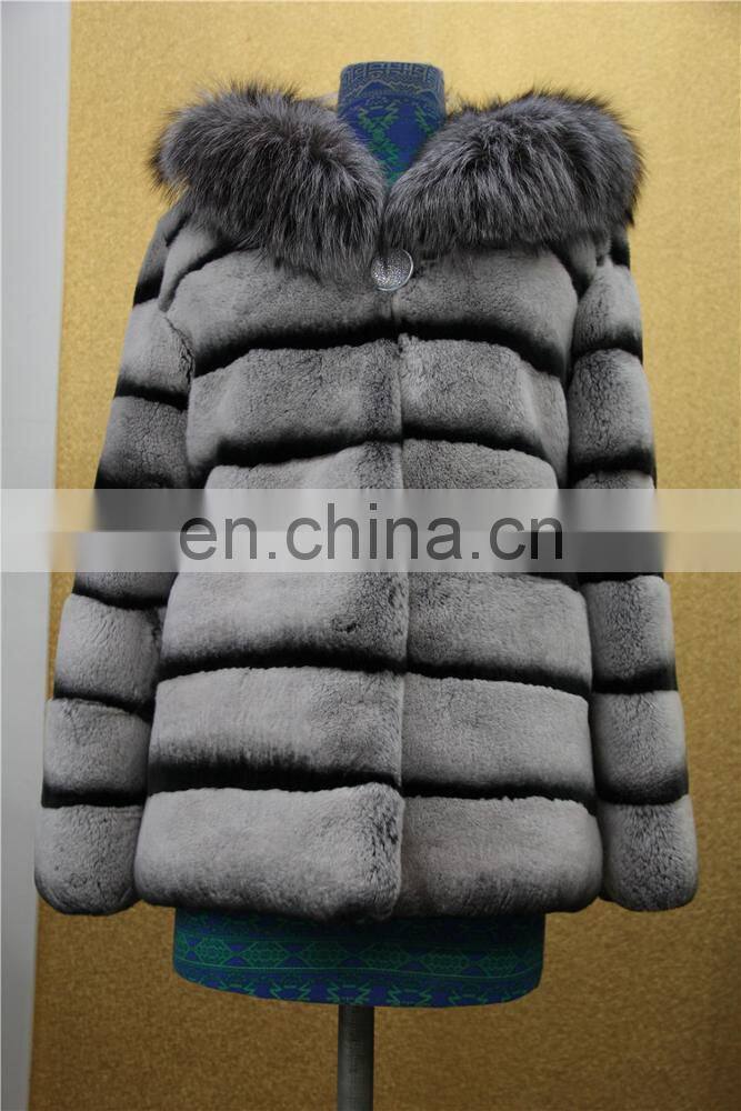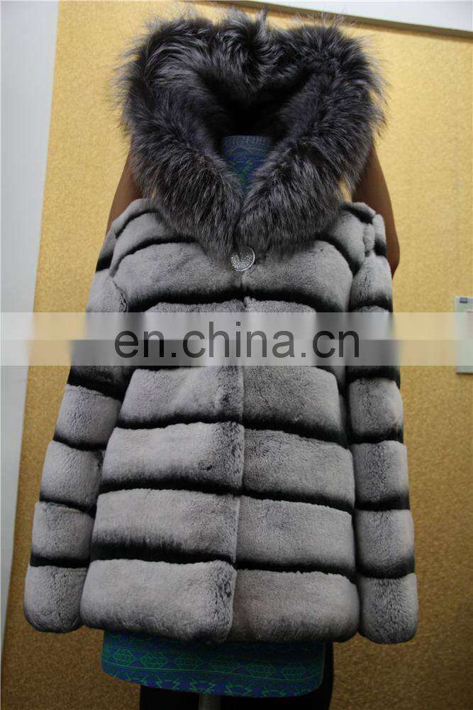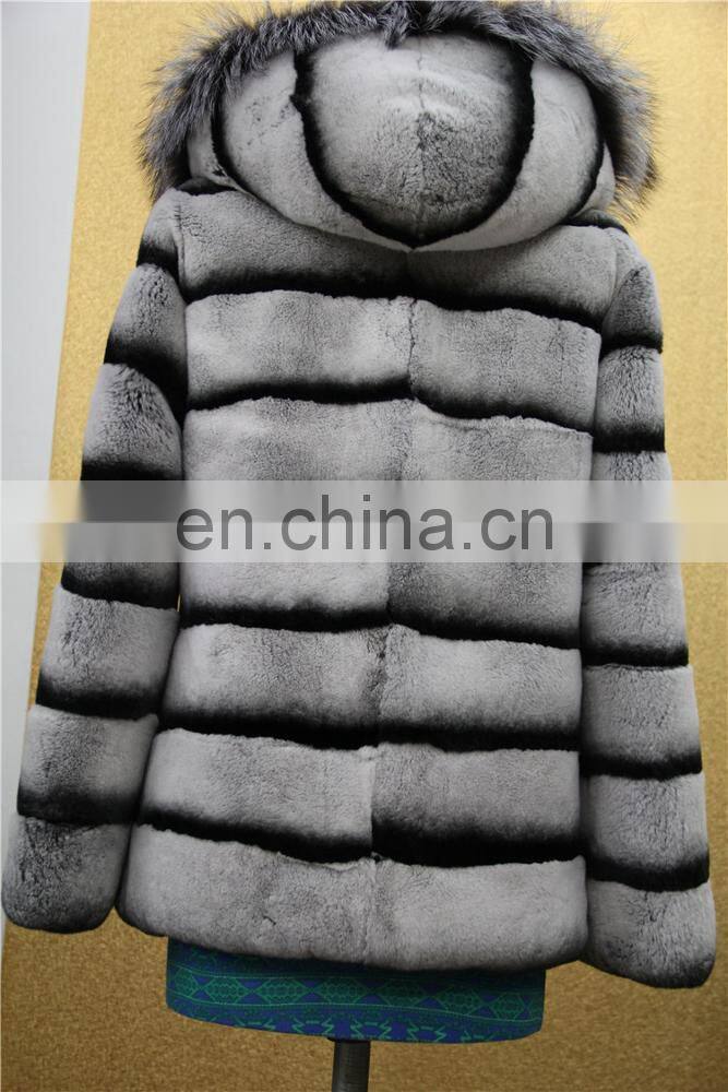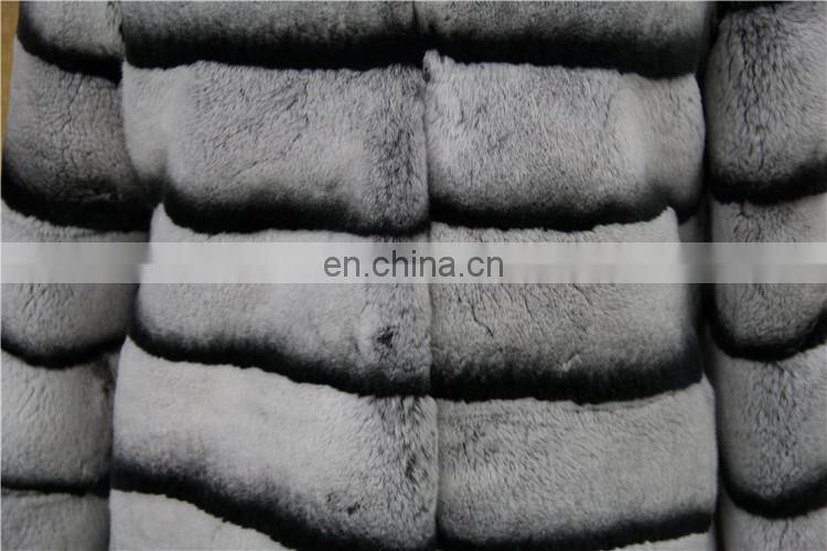 Wholesale New Long Style Womens Winter Fur Coat Whole Skin Real Rex Rabbit Silver Fur Coats With Hood