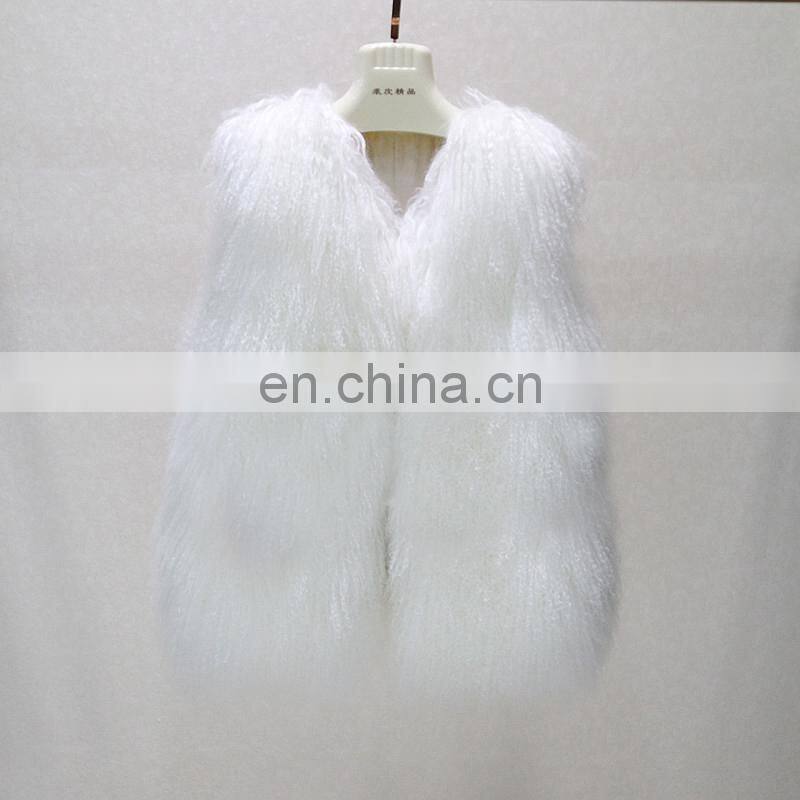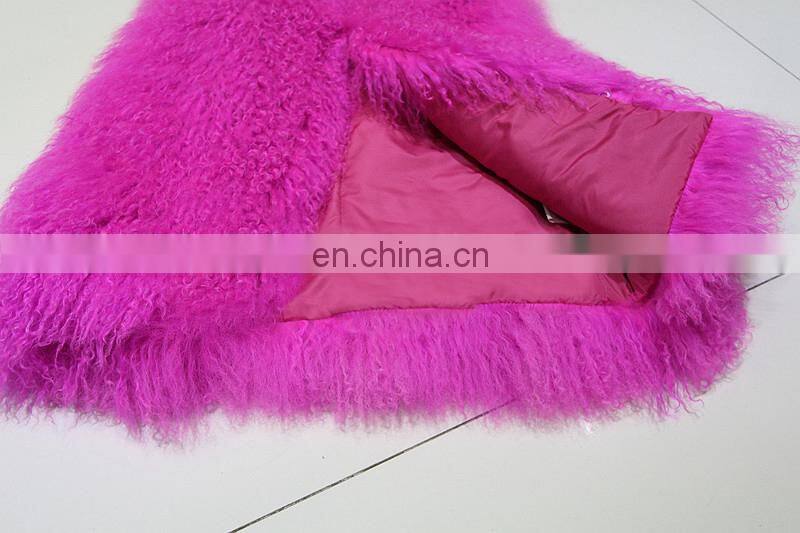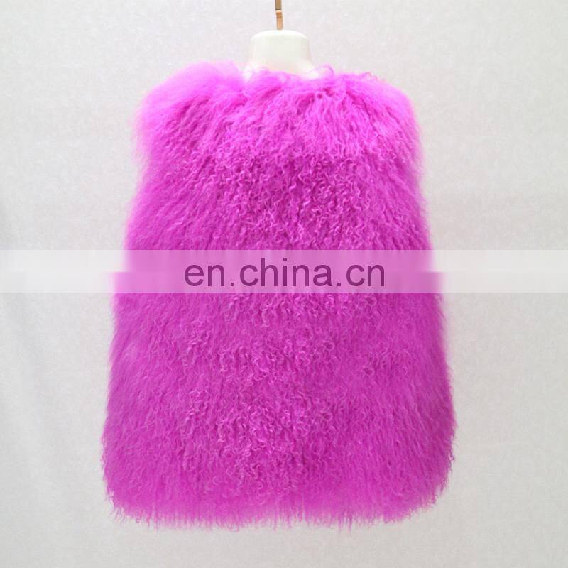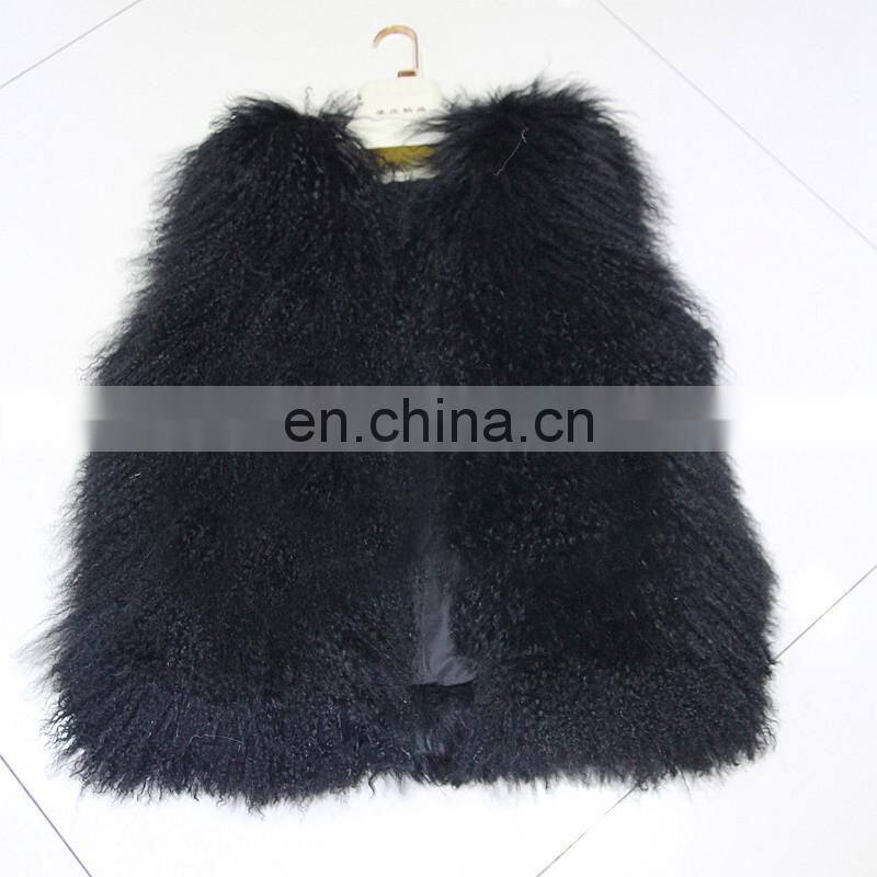 100% Genuine short mongolian lamb fur vest pretty tibet lamb fur vest for girl