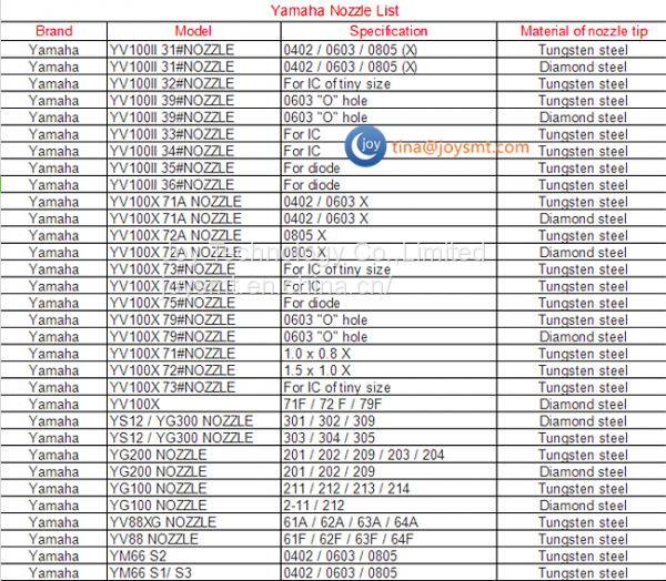 Joysmt can also provide other Yamaha nozzle models as follows: