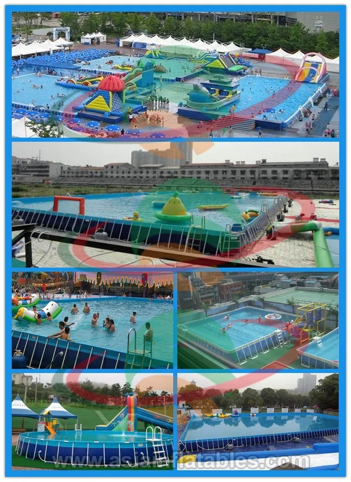 We supply frame pools for outdoor swimming. This metal above ground pool is made of safe materials and can be customized with specific size, design and color. You can easily start your own business with our high quality pools