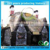 The material of advertising inflatable tent is 0.55-0.9mm PVC Tarpaulin, ripstop nylon, transparent PVC or TPU. They are all flame retardant and waterproof. We can make inflatable marquee by two kinds of workmanship. One is sewing that specializing in the production of continuous inflatable tent with blower. And the other is hot welding, which is specialized in producing airtight tent. If you like our tents, please tell us the person number you want to contain, the status of the site and the usage. And then we will suggest you the most suitable style, size and material. Of course, Also we can make outdoor inflatable tent completely by your requirements (design, size and colors).