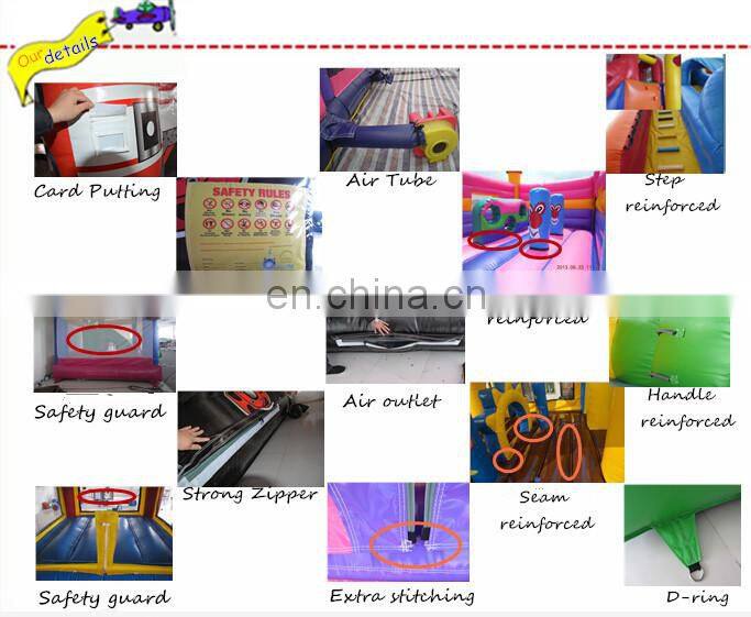 Details of the product: 1. Feature: Durable, attractive, safe and environment concerned. 2. Our wider joint part is 2.5cm from which most of other factories is 1cm 3. We double stitching everywhere, with fourfold stitching at bottom stress point. 4. It is suitable for family, school, playing center, and amusement park, etc 5. CE/EN14960/SGS /EN71certificate. | |||