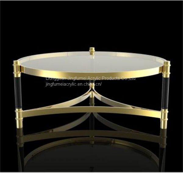 Best Selling Round Acrylic Coffee Table With Stainless Steel Electroplated Titanium Frame